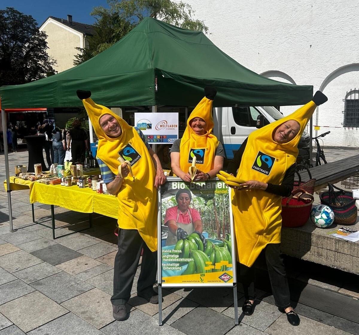 Am Samstag, den 8. Juni 2024, fand auf dem Wochenmarkt am Kirchplatz eine besondere Aufklärungsaktion statt. Unter dem Motto „Bananen: Die bittere Wahrheit hinter der süßen Frucht“ wurde auf die erschreckenden Missstände im Bananensektor aufmerksam gemacht.