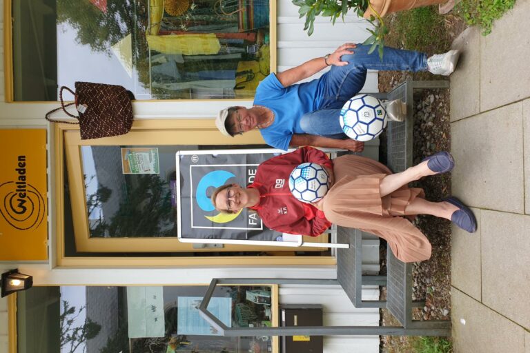 Unser Laden hat am 1. Advent für Sie geöffnet. So können Sie mit dem Kauf von fair gehandelten Produkten auch beim Shopping sich und anderen etwas Gutes tun. Auf Fußball müssen Sie auch nicht verzichten – eine Torwand, ein Quiz und ein Fußball-Parkour warten auf Sie!