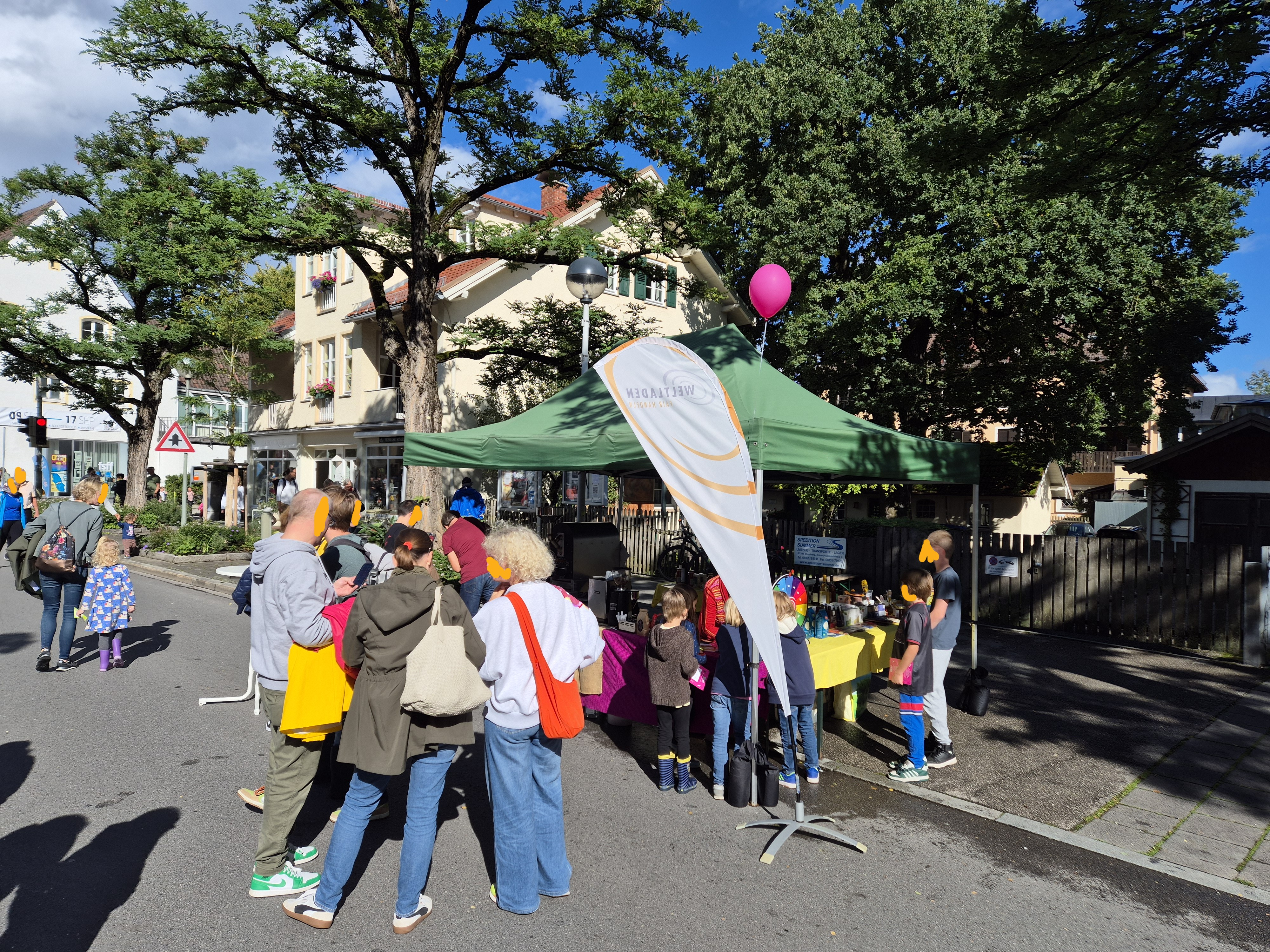 Auch dieses Jahr war die FairTrade Steuerungsgruppe Starnberg inkl. der 3. Bürgermeisterin C. Falk mit einem Stand bei dem Großereignis „Starnberg bewegt“ vertreten. Hierfür wurden die beiden Einkaufsstraßen am Sonntag, 14.09.2025 in eine Fußgängerzone verwandelt. Zahlreiche Vereine haben mit viel Fantasie für ein buntes Programm gesorgt, ergänzt um die geöffneten Geschäfte. Wie im Vorjahr hat es die ersten zwei tunden immer wieder geregnet, danach gab es herrlichen Sonnenschein. Während des Regens konnten die Besucher die Ausstellung zur Vielfalt des Fairen Handels im Foyer der gegenüberliegenden Bank anschauen. Unser Stand war eine von 12 Stationen, wo sich Kinder eine Laufkarte abstempeln lassen konnten, um an einem anderen Stand eine große Kugel Eis geschenkt zu bekommen. So gab es einen großen Andrang von Kindern und ihren Eltern, um für den Stempel eine Quizfrage am Glücksrad zu beantworten. Das Showrösten mit Ralf Gebhard vom Weltladen Augsburg hat zudem weiteres Publikum angezogen. Dadurch kamen wir mit vielen Menschen unterschiedlichen Alters ins Gespräch zum Fairen Handel mit Fokus auf Kaffee und Schokolade. Geschätzt war der heiße Espresso als Verkostung an einem sonnigen Nachmittag.