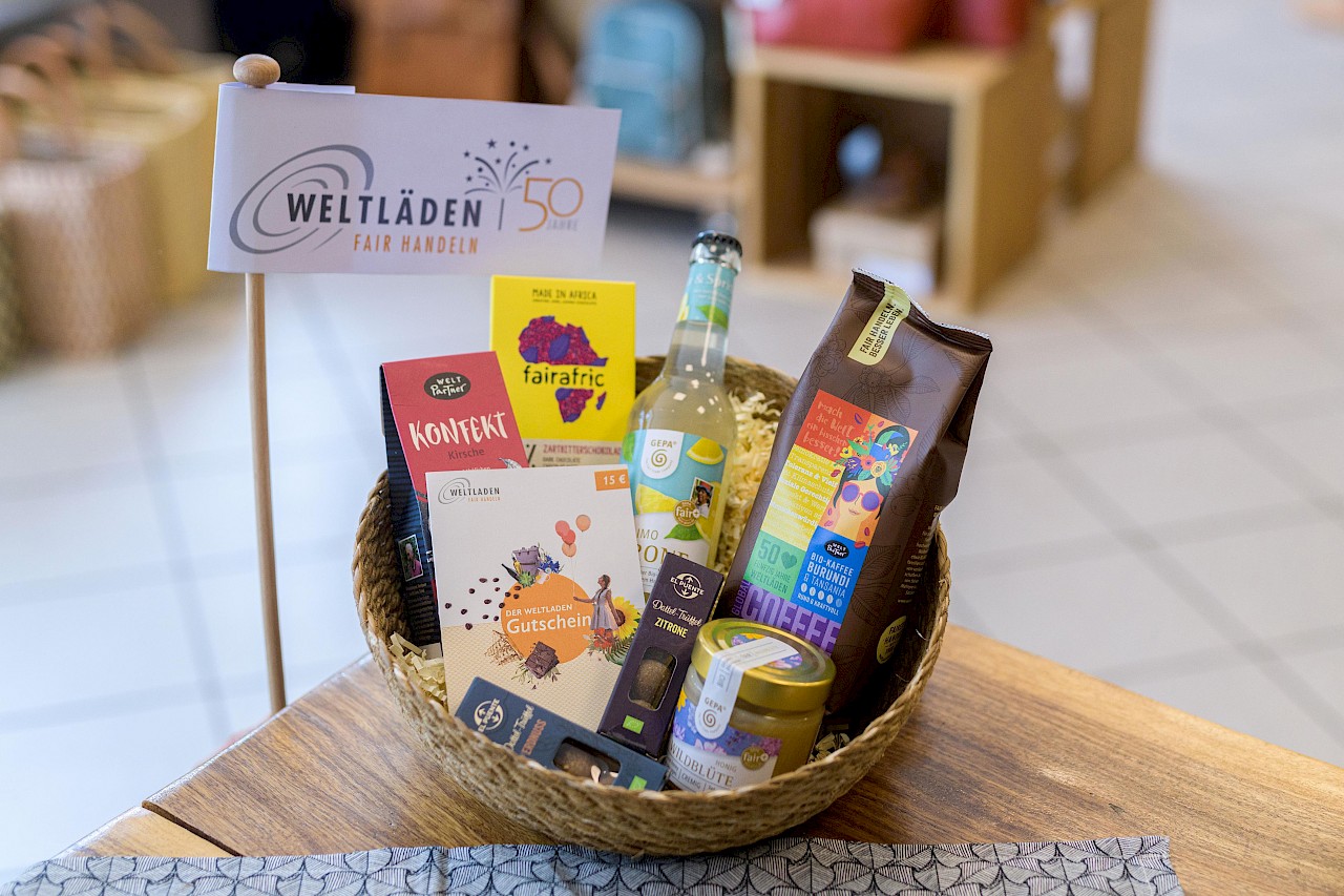Kaffee, Tee, Honig, Marmelade, Schokolade, Müsliriegel, Gummibärchen, Kakao, Kekse, Gewürze, Trockenfrüchte, Nüsse, Essig, Olivenöl, Salzgebäck, Weine, Säfte, Nudeln, Pesto, Tomatensaucen, Quinoa, Linsen, Bohnen, Reis u.v.m.