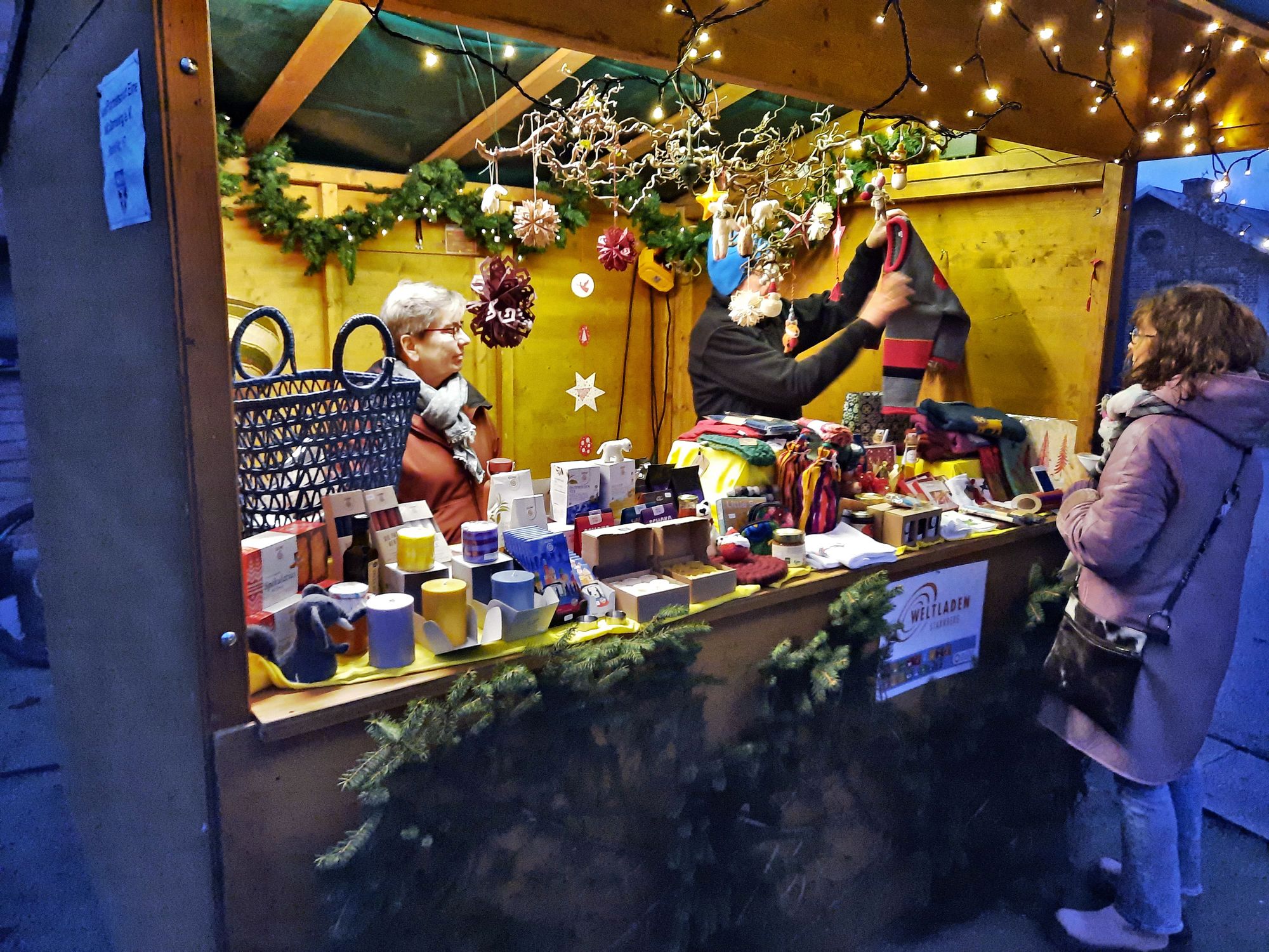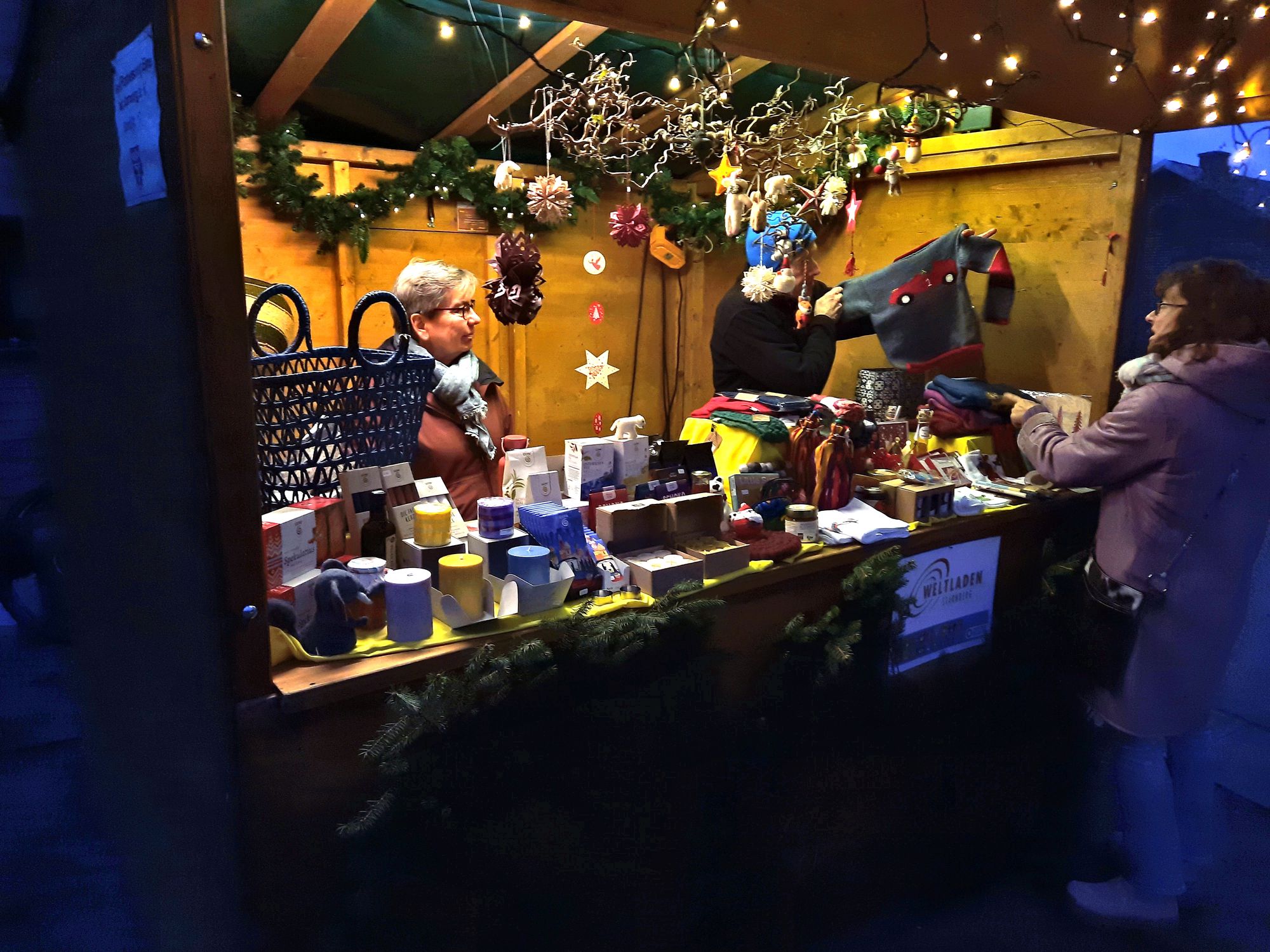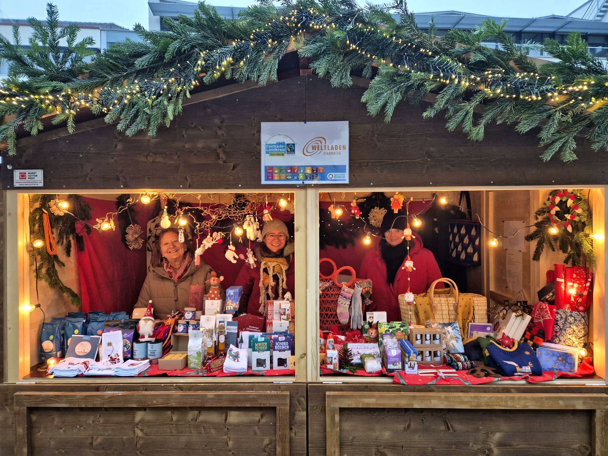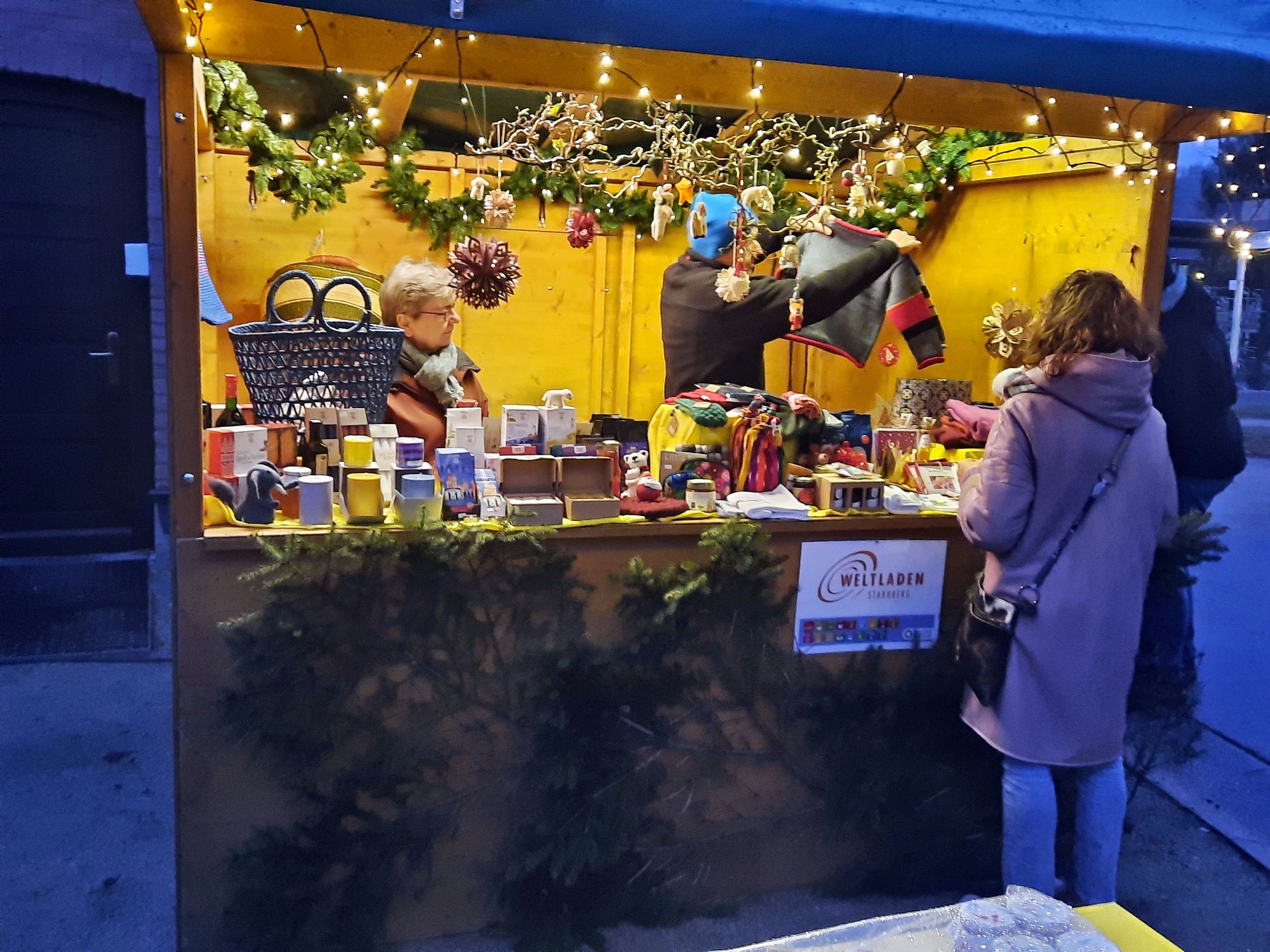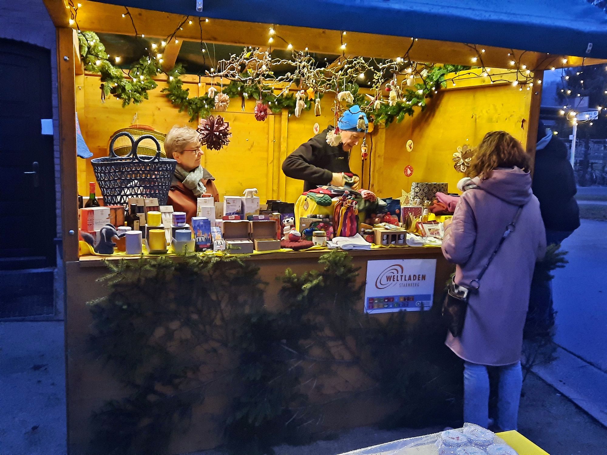 Unser Weltladen bietet eine große Auswahl an fairen Produkten auf dem Starnberger Christkindlmarkt an. Wir freuen uns auf Gespräche mit Ihnen, wie mit Produkten aus dem fairen Handel ein Beitrag zu menschenwürdigen Arbeitsbedingungen und fairen Löhnen geleistet werden kann. Denn es kommt nicht nur auf die Ware an, sondern insbesondere auf die Menschen dahinter. "Fair ist, nicht billig einzukaufen, wofür andere teuer bezahlen müssen."